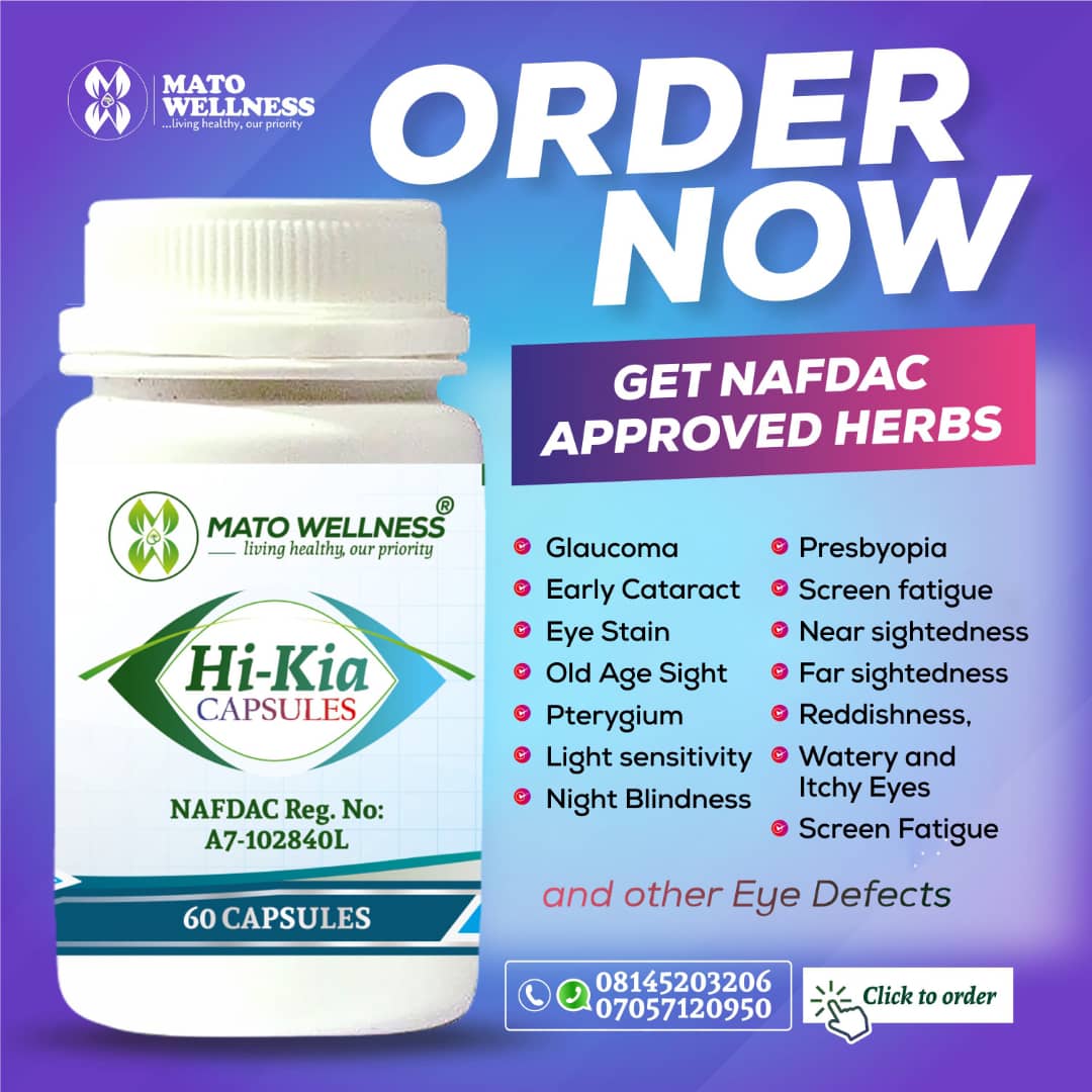 GET Accient Herbal Remedy Certified by NAFDAC and Say Goodbye to Eye Problems like Glaucoma, Early Cataract, Eye Stain, Old Age Sight, Pterygium, Light sensitivity, Night Blindness,Presbyopia,Nearsightedness,Farsightedness, Reddishness, Watery and Itchy Eyes, Screen Fatigue and Other Eye Defects in less than 8 weeks!!!Â